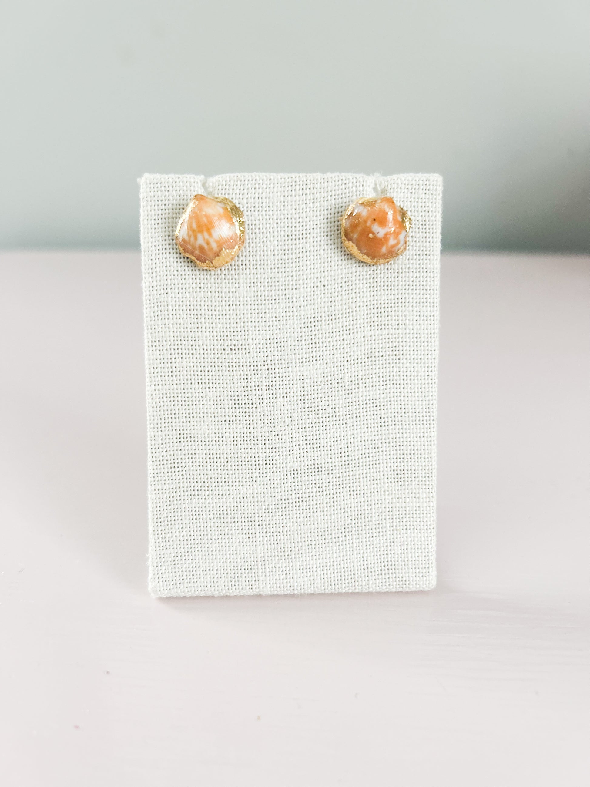 Bittersweet clam shells meet refined elegance in these August stud earrings. Each piece features genuine shell accents complemented by warm gold detailing, creating a sophisticated coastal aesthetic. Secured with durable stainless steel posts, these earrings offer both beauty and everyday wearability. Perfect for those who appreciate the natural artistry of the ocean combined with timeless jewelry craftsmanship.