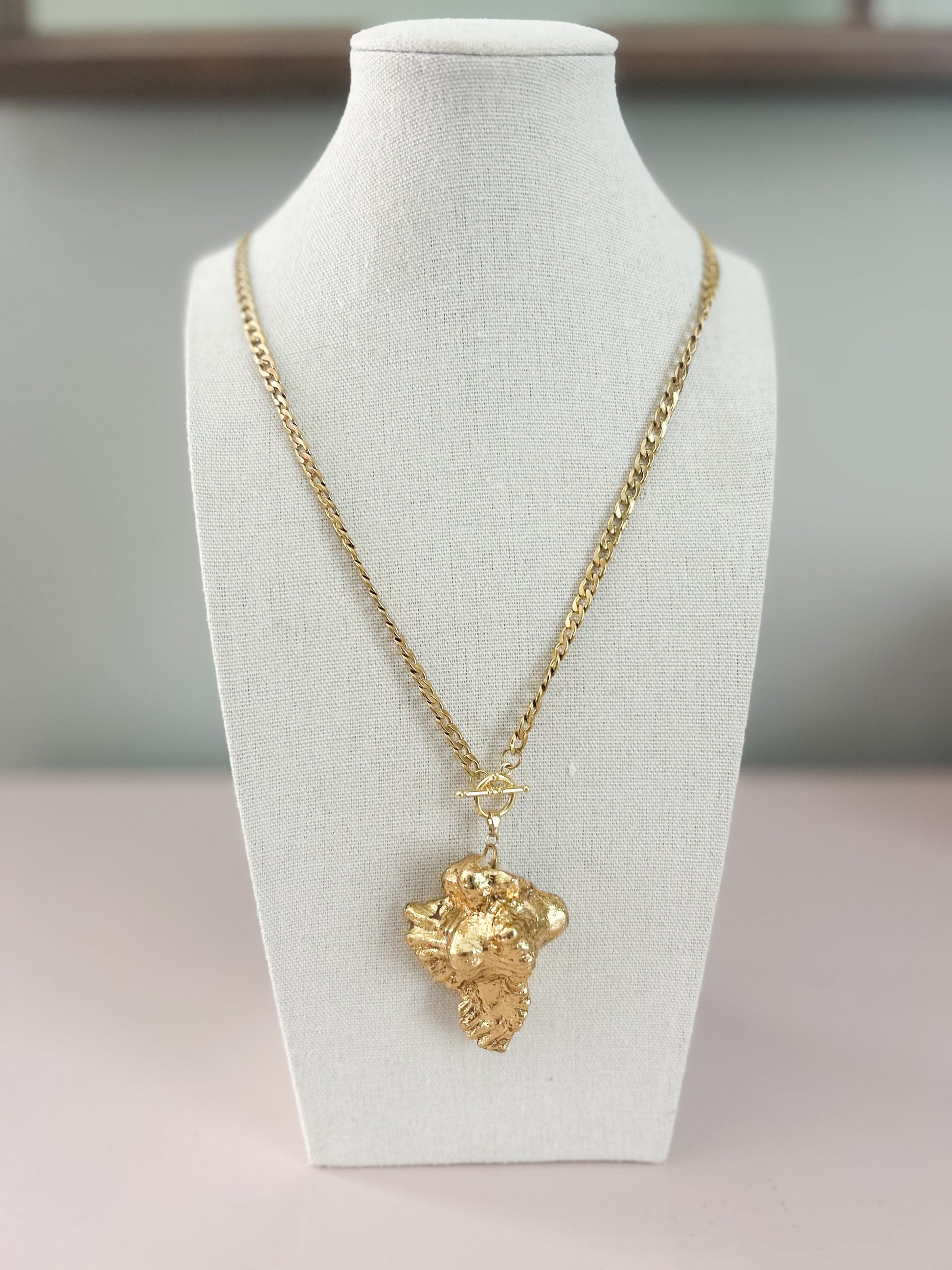 Featuring a beautifully gold leafed conch shell pendant, this 24" chain necklace is the perfect accessory to elevate any outfit. Its unique toggle clasp ensures a secure fit while the tarnish-proof chain guarantees long-lasting wear. Add a touch of elegance to your look with this Conch Chain Necklace.
