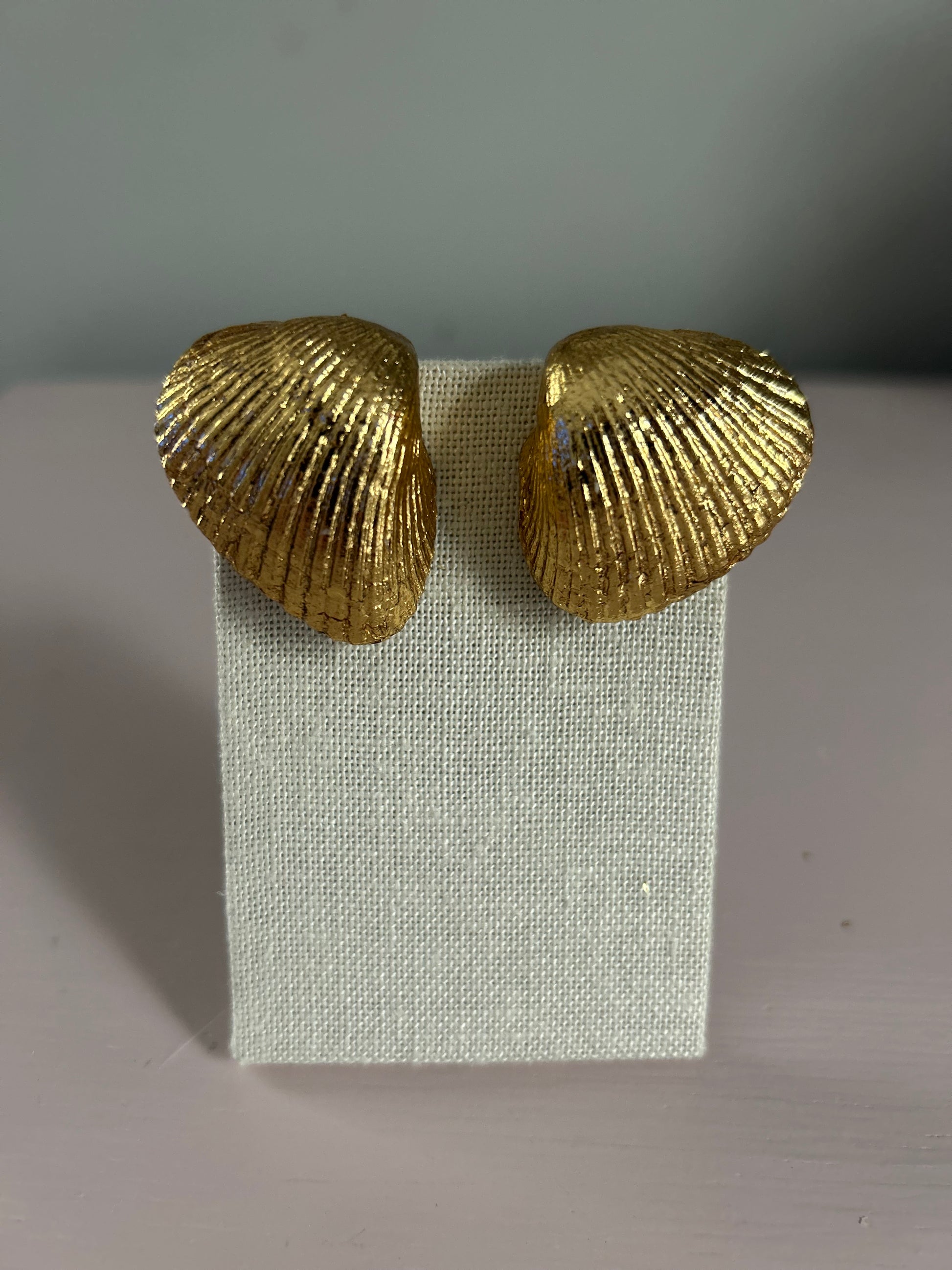 Upgrade your accessory game with our Large Ready for It Studs. These single cockle shell earrings are lightweight and hypoallergenic, perfect for everyday wear. The real gold leafed shells add a touch of elegance. With a secure post back and clip, you won't have to worry about sagging. Expertly crafted for style and comfort.