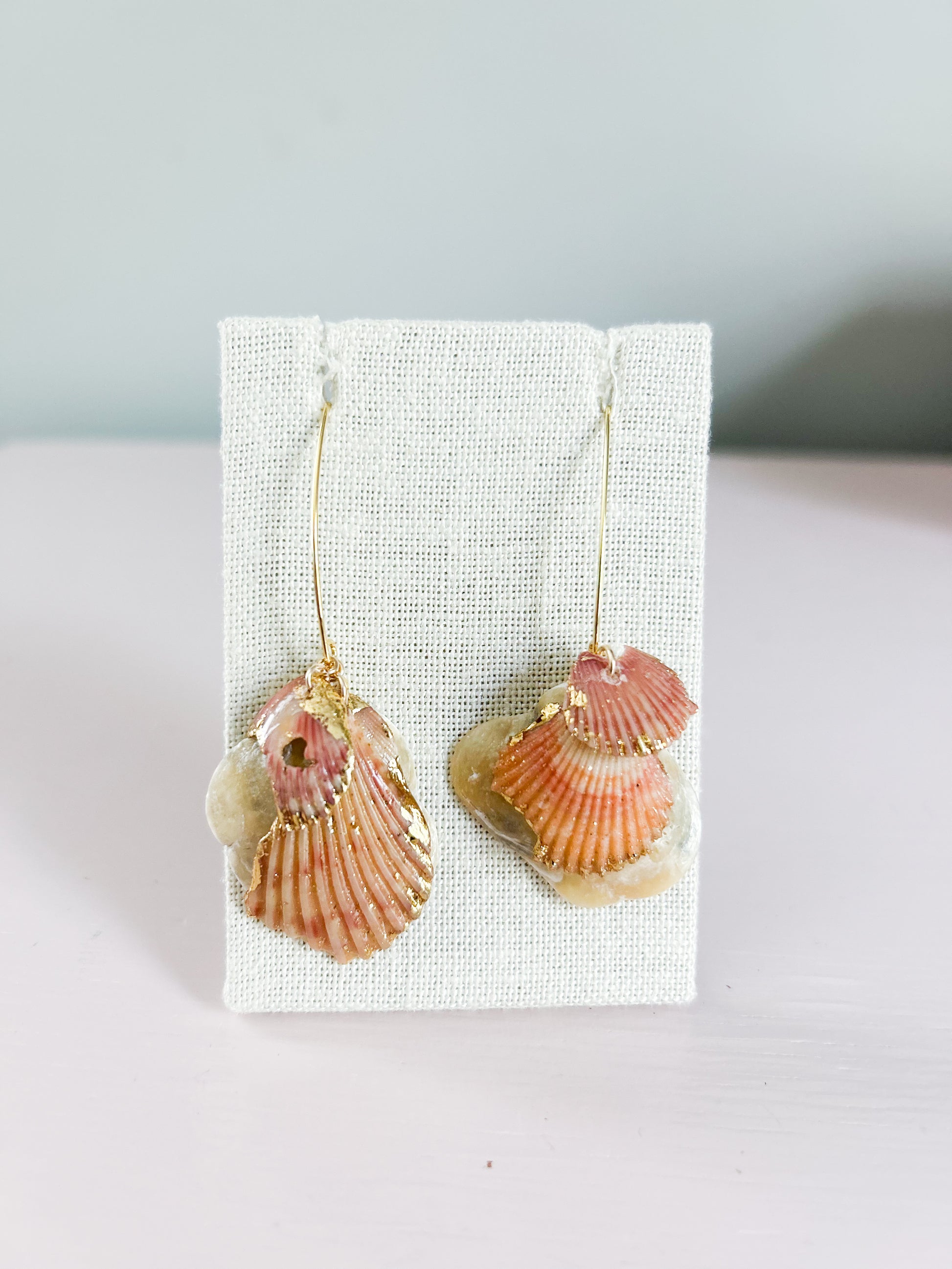 These Pastel Orange All Too Well Hook Earrings feature delicate orange scallop shell pieces paired with crisp white jingle shells, accented by subtle gold details. Designed with hypoallergenic hooks, they ensure comfort for sensitive ears. Their lightweight construction makes them ideal for all-day wear, combining natural elegance with expert craftsmanship.