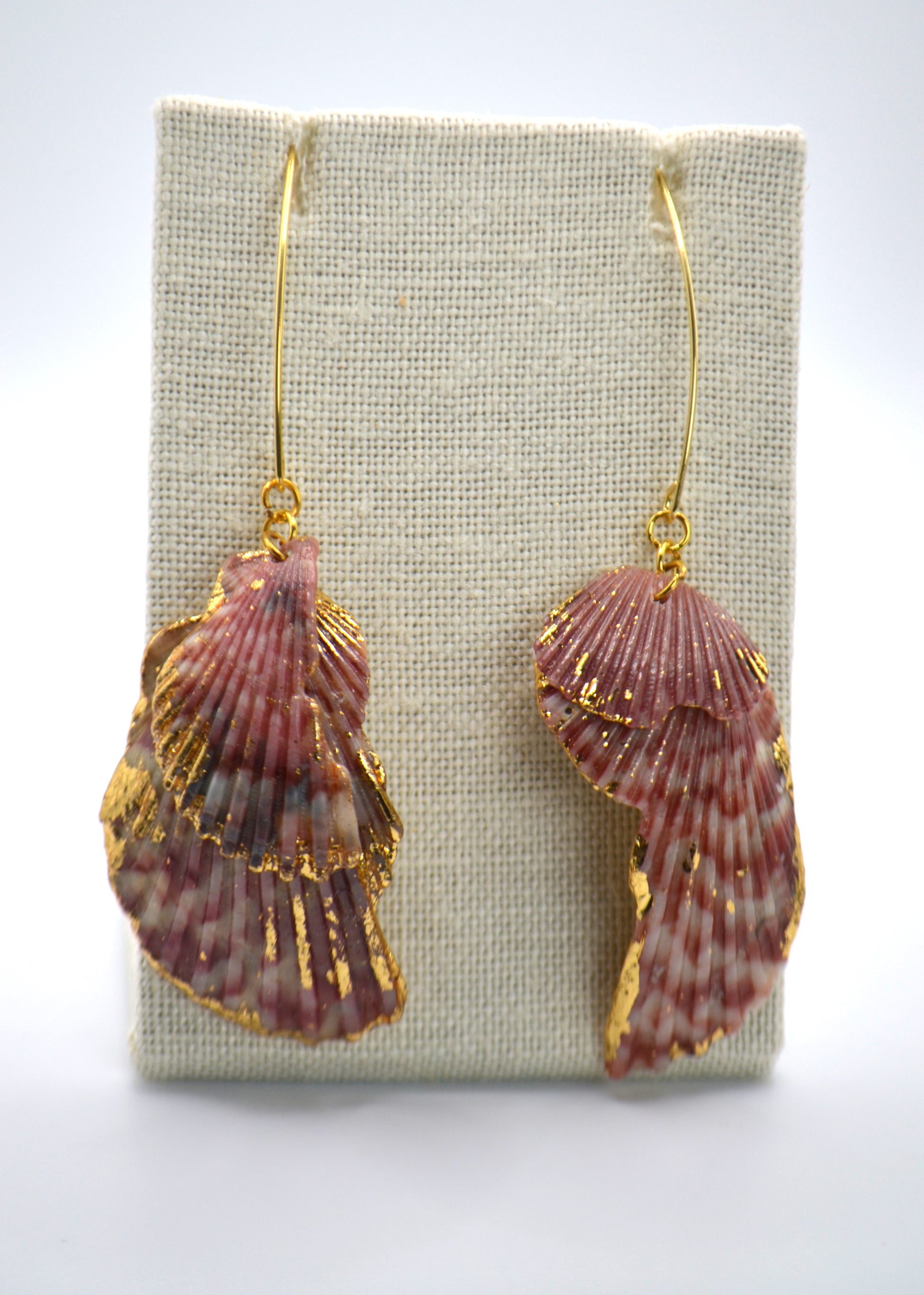 Expertly crafted with a pink scallop shell, these hook earrings showcase a stacked style for a unique and elegant look. A must-have for any fashion-forward individual looking to add a touch of sophistication to their outfit. Stand out from the crowd with these stunning Pink Exile earrings.