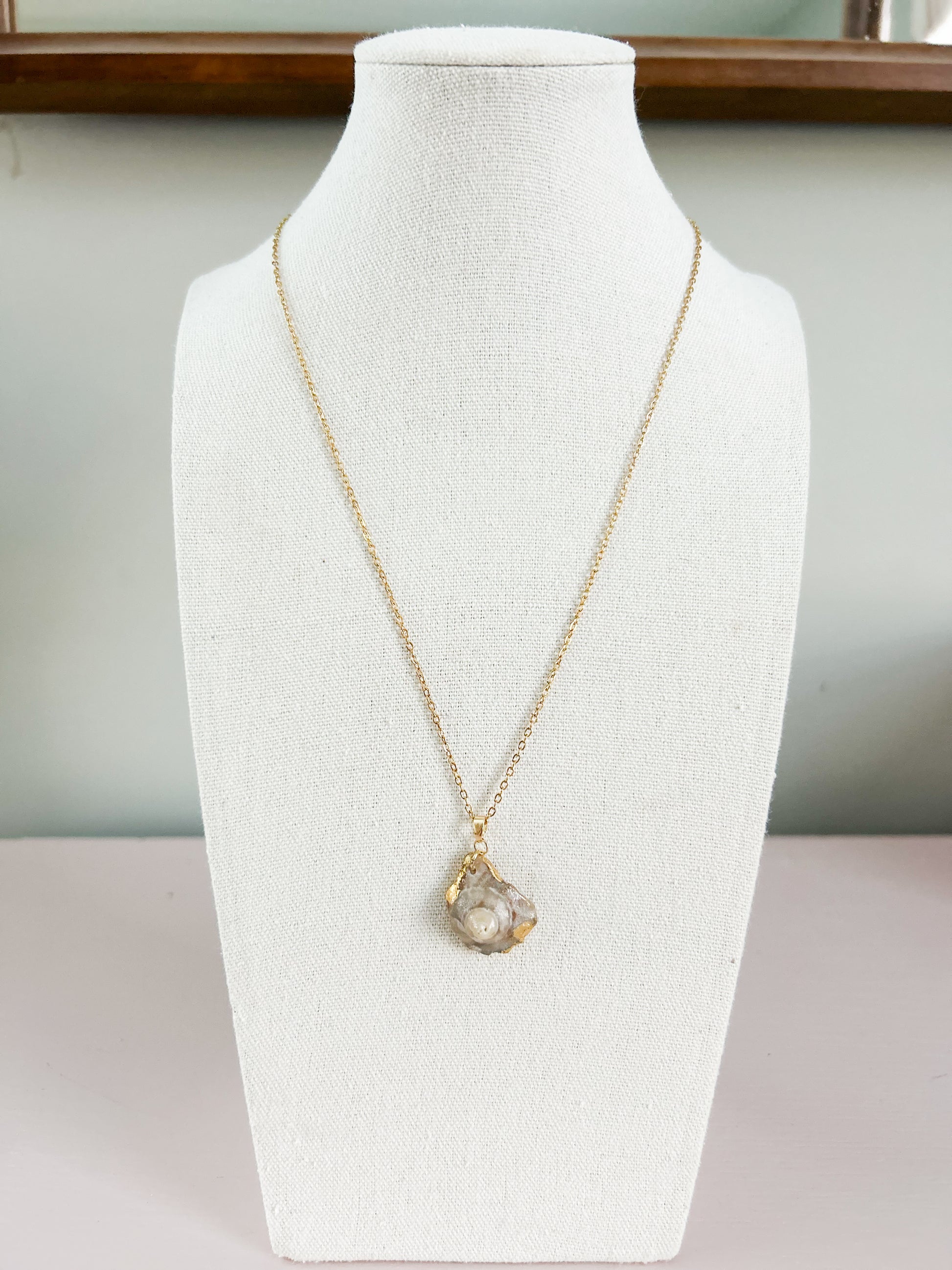 This Small Conch Call It What You Want Necklace features the top of a conch shell adorned with delicate gold accents. The included tarnish-proof chain ensures long-lasting wear. Elevate any outfit with this unique and timeless piece.