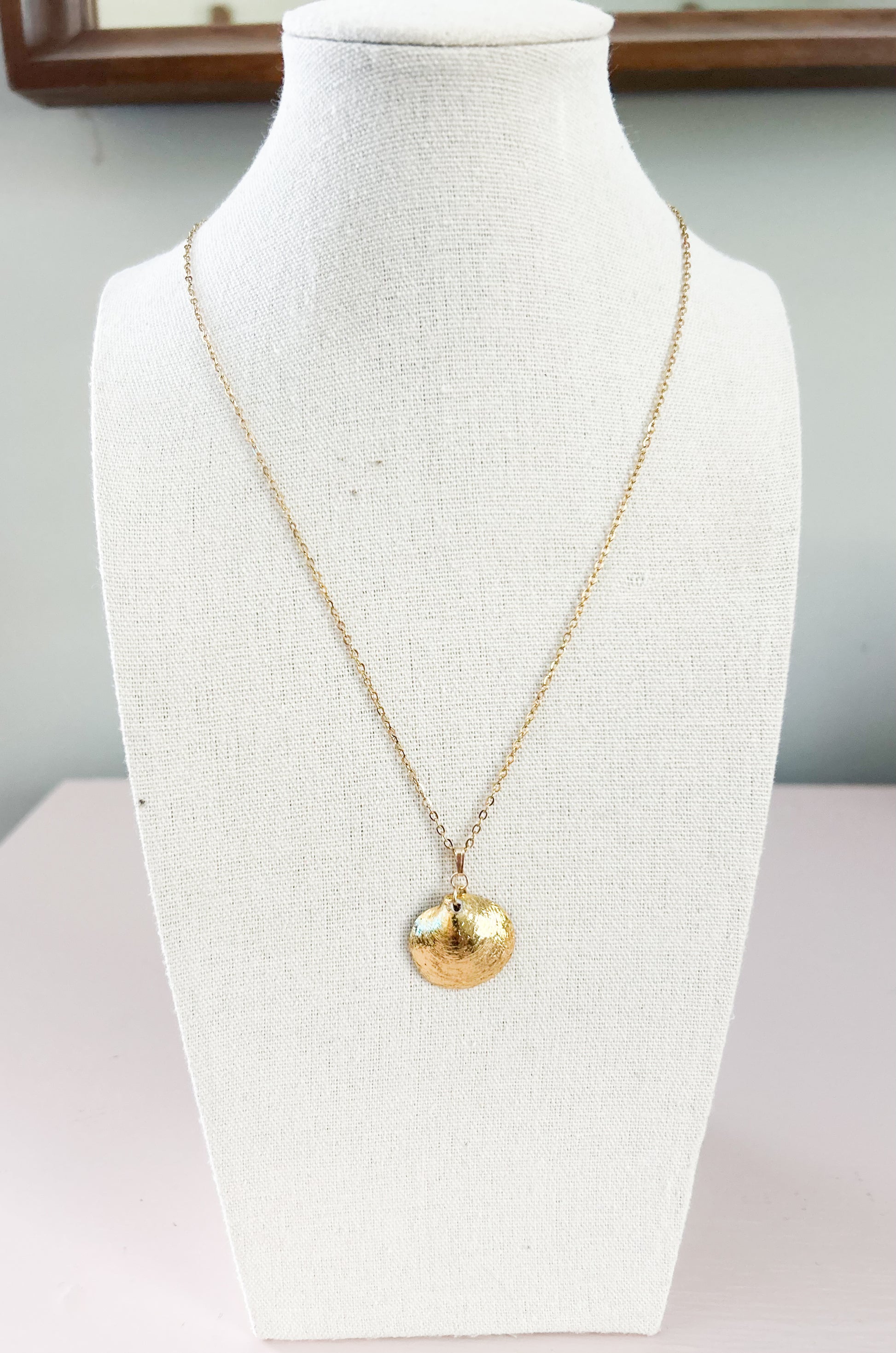 This delicate necklace features real shells, including a pearlized oyster shell and a gold leaf scallop shell, artfully combined with small charms on a dainty gold chain. Expertly crafted, it offers a refined, natural elegance perfect for adding a subtle coastal touch to any outfit.